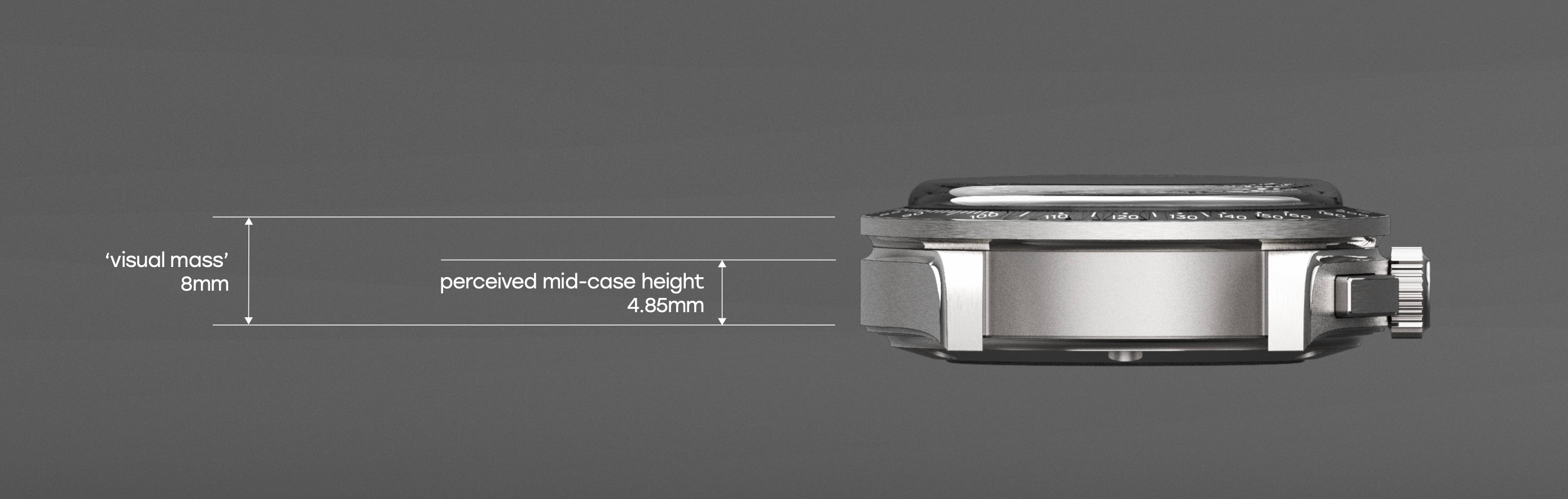 Next up were the pushers; the buttons responsible for activating and resetting the chronograph function. Pump pushers would be the predictable move, but we wanted to walk the line between the sporty DNA of our existing collection and the more dressy looks of some of the 1940s chronographs we’ve long admired. Besides, with an external tachymeter bezel, this chronograph was sporty enough already. We could afford to tone that down a bit with some rectangular pushers with chamfered edges. The goal was for this watch to be familiar at a glance, yet at the same time utterly unlike anything else out there once you actually got a good look at it.