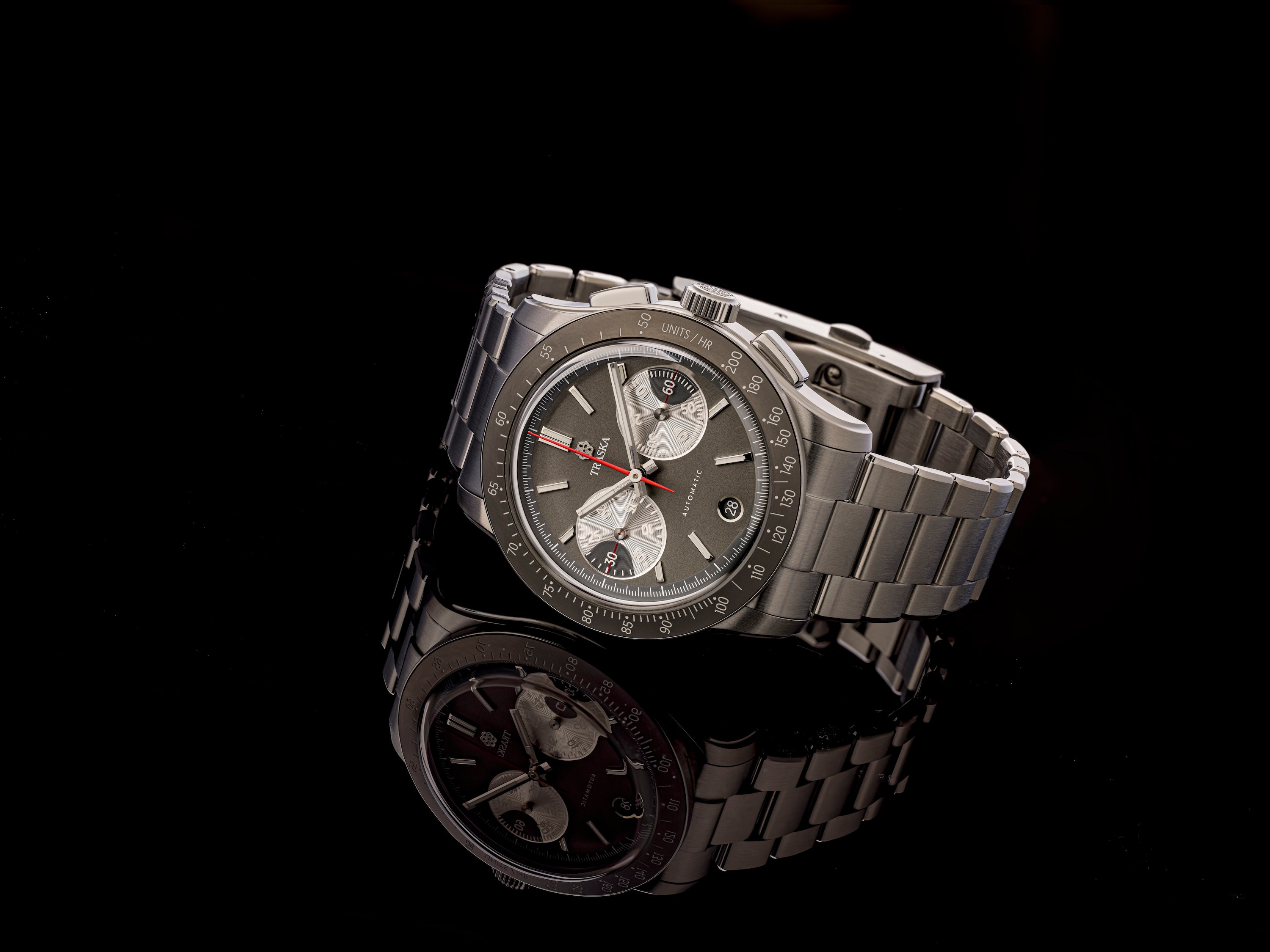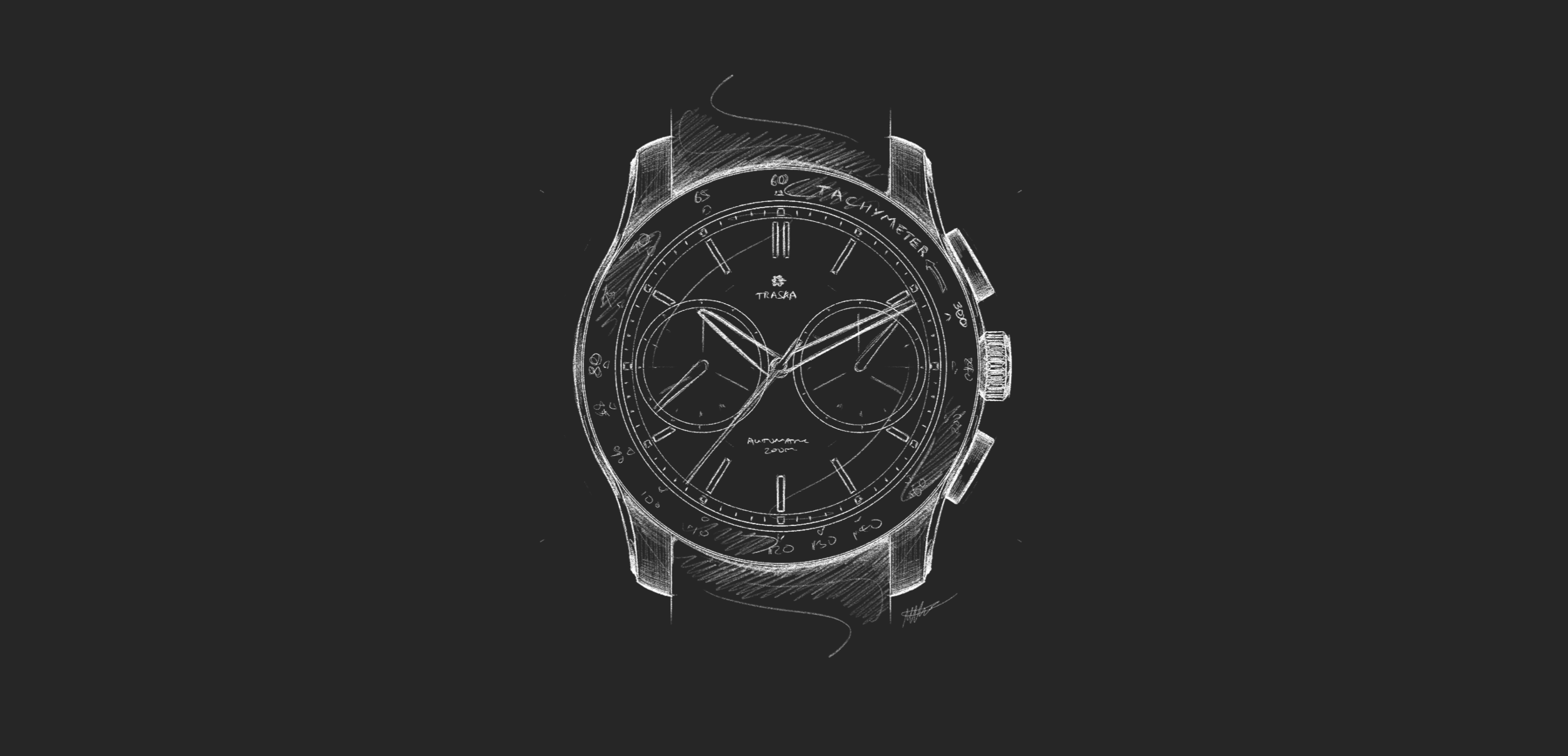 Reasons of both form and function made this choice inevitable. The Seiko NE86 is 0.3 mm thinner than the closest viable Swiss competitors we assessed. It doesn’t sound like much, but in watchmaking, 0.3 mm is a lot. Yes, the Chronograph is a radical departure for us. But it’s still a TRASKA. Our watches are svelte. Since any available chronograph movement was already going to push the bounds of what we were comfortable with in terms of thickness, we needed to do everything possible to ensure we were making something that stayed true to our ideal vision.