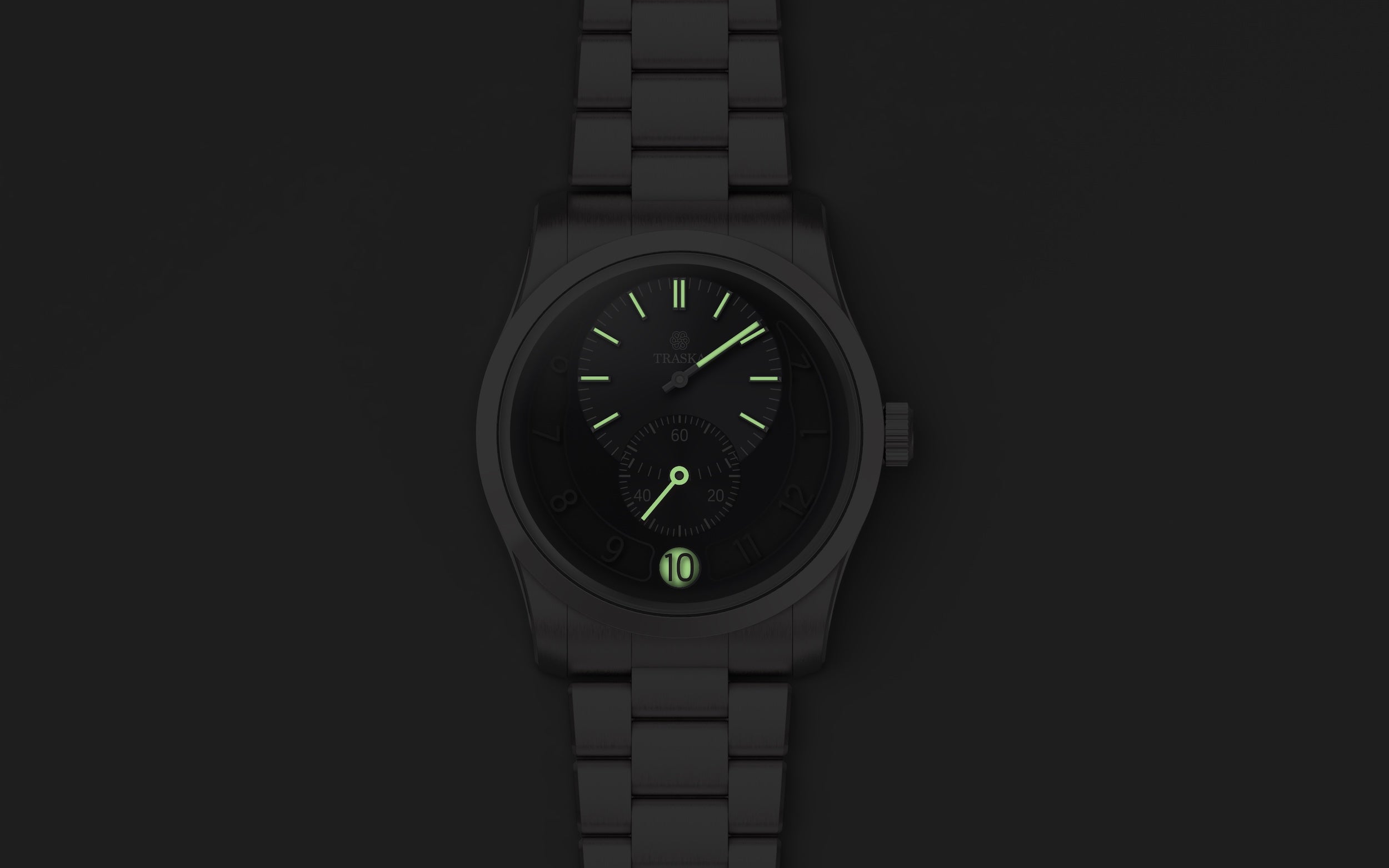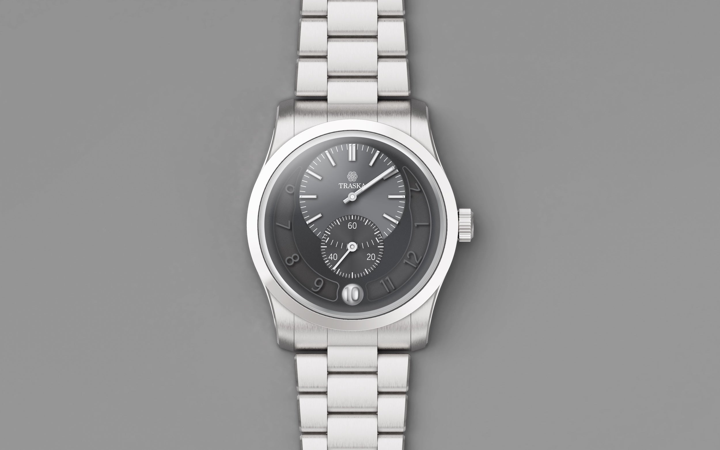 A novel design complements the sophisticated jump hour functionality; the TRASKA Jump Hour sports a unique tripartite dial with minutes, seconds, and hours displayed in their own defined zones. Arabic numerals revealed by a transparent disc at the dial’s base jump forward every 3600 seconds to display the current hour. Designed in partnership with renowned watch designer Max Resnick, it's an aesthetic that gently challenges while remaining true to the purposeful minimalism for which TRASKA is known.