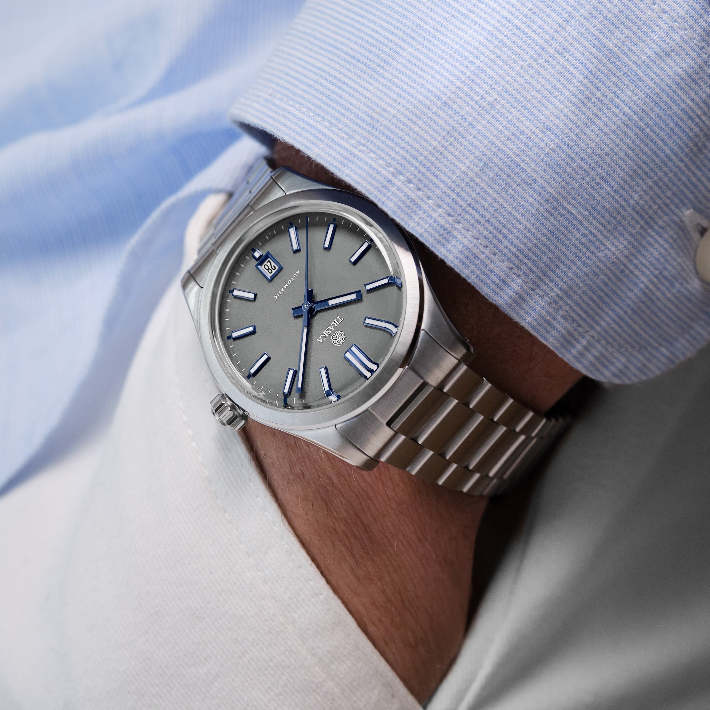 The TRASKA commuter is minimalism, defined. Its robust construction does not compromise its elegant design — the screw-down crown enables the Commuter to pack 100 meters of water resistance into its frame while maintaining its clean-cut profile and slender feel. Imbued with TRASKA’s signature hardening process and sapphire crystal, this is a deceptively formidable companion for all occasions and adventures.