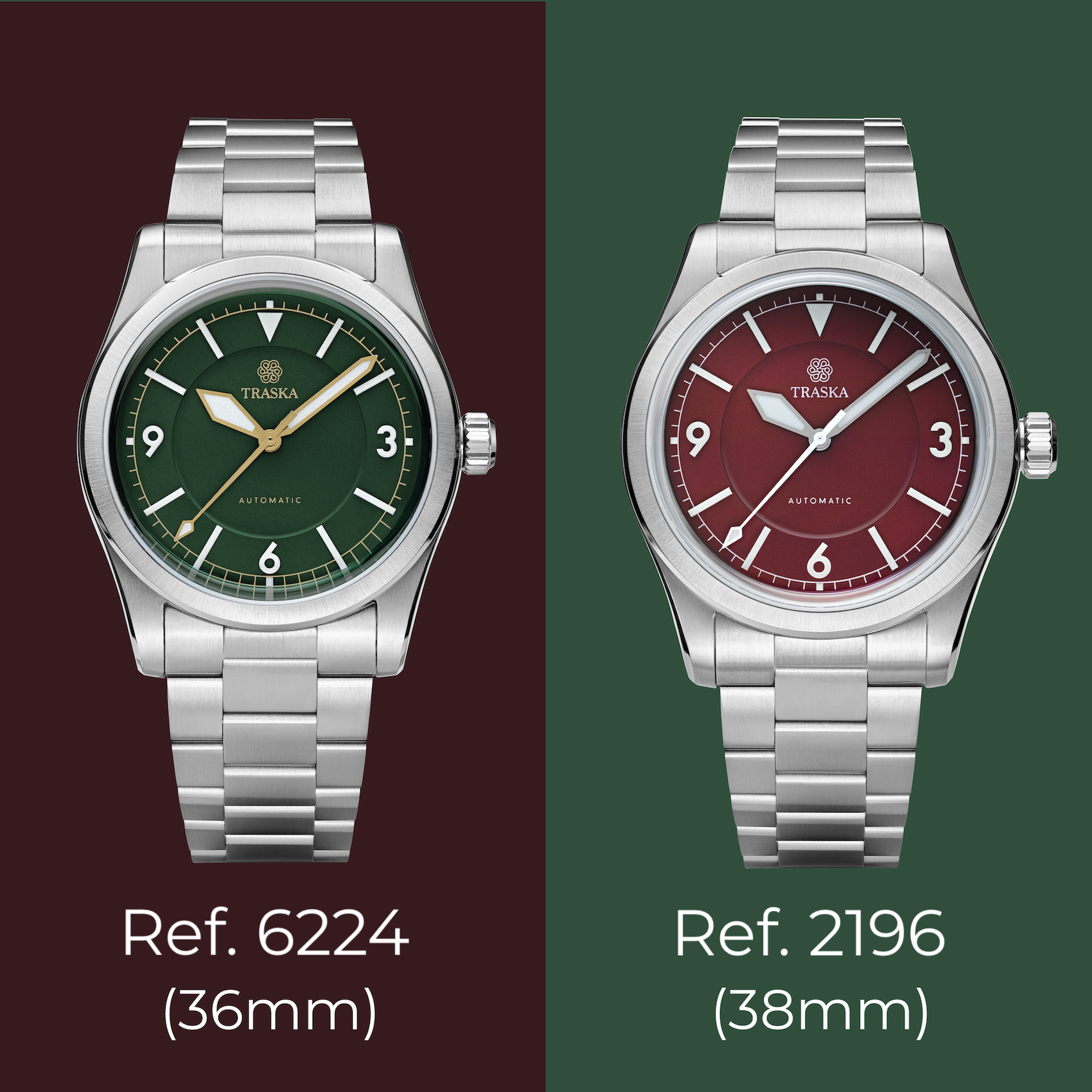Water resistant to 100 meters and packed with luminescence for easy reading in low-lite, TRASKA’s signature hardening coating makes the Summiteer virtually impervious to scratches or shocks. Available in both 38 and 36mm, the use of contrasting dial and hand colors for several colorways provides a burst of freshness for a lively twist on the vintage aesthetic.