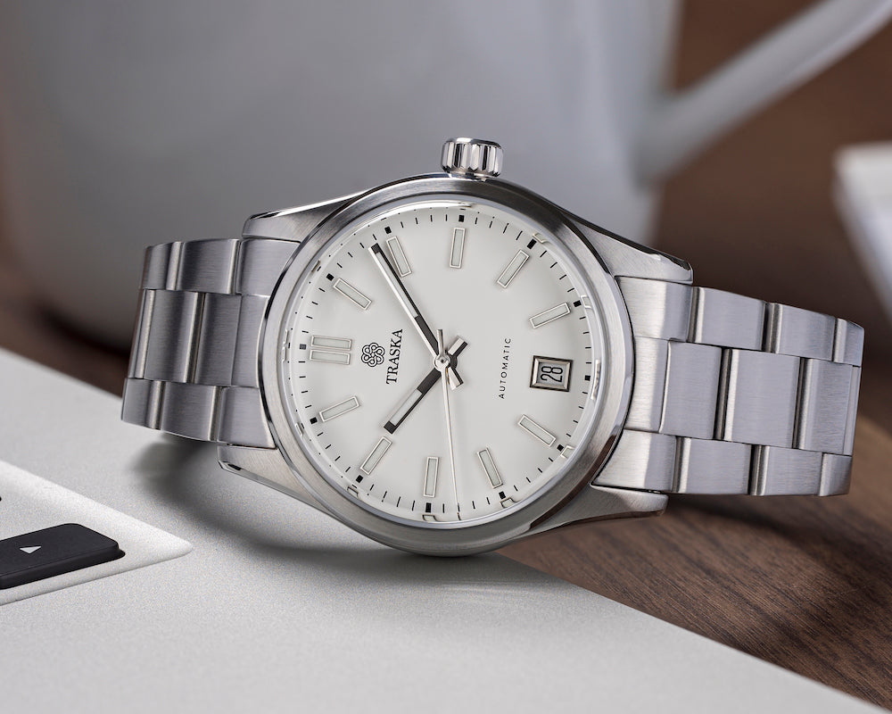 This realization of the Commuter makes a good thing better thanks to our revolutionized boxed sapphire crystal design, which has allowed us to slim the case down from 11.2mm to just 10.55mm (including the raised crystal), resulting in superior ergonomics and aesthetic appeal. With a completely redesigned case, chamfered hour markers, and a whole symphony of subtle yet harmonious design tweaks to the hands, dial, and beyond, the Commuter has arrived.