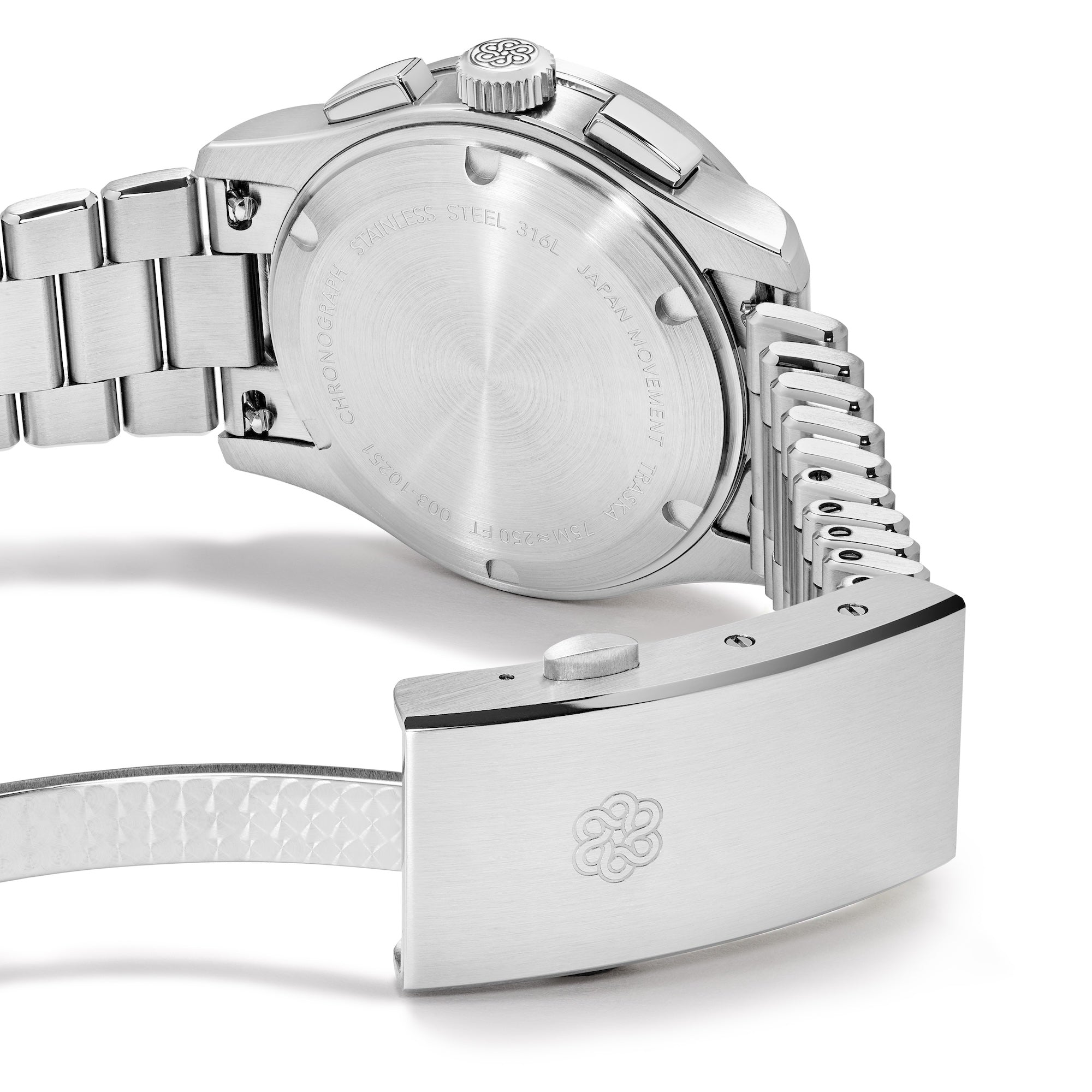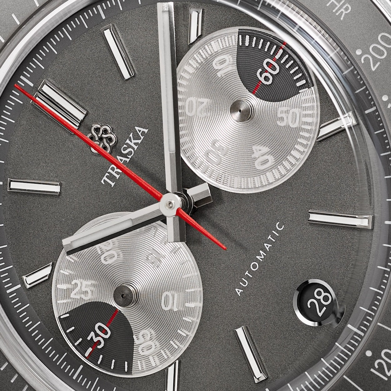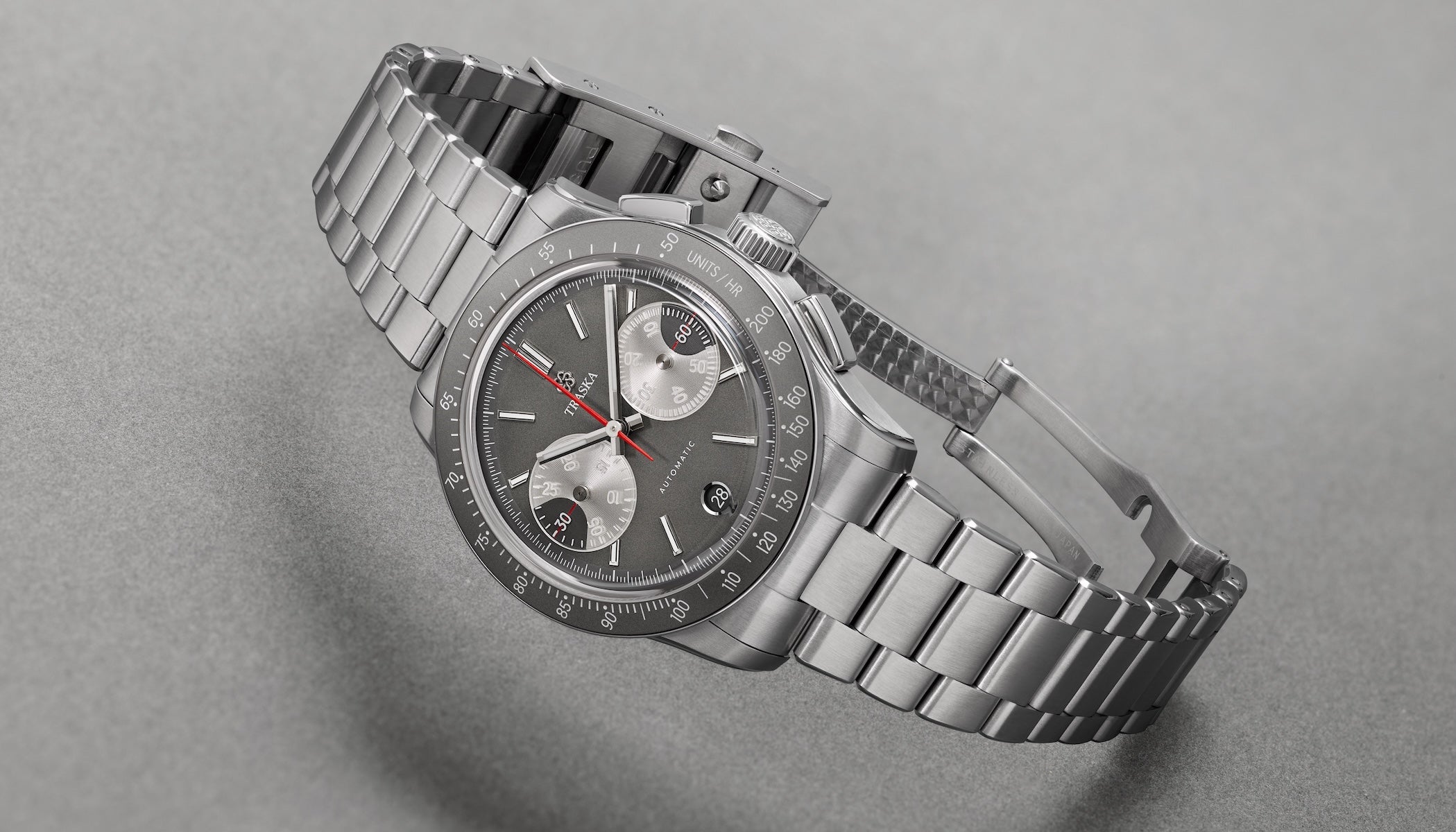 The TRASKA Chronograph is powered by the Japanese-made TMI NE86 automatic movement. Amidst fierce competition for chronograph movements, TMI revealed itself as the only viable option for three key reasons.