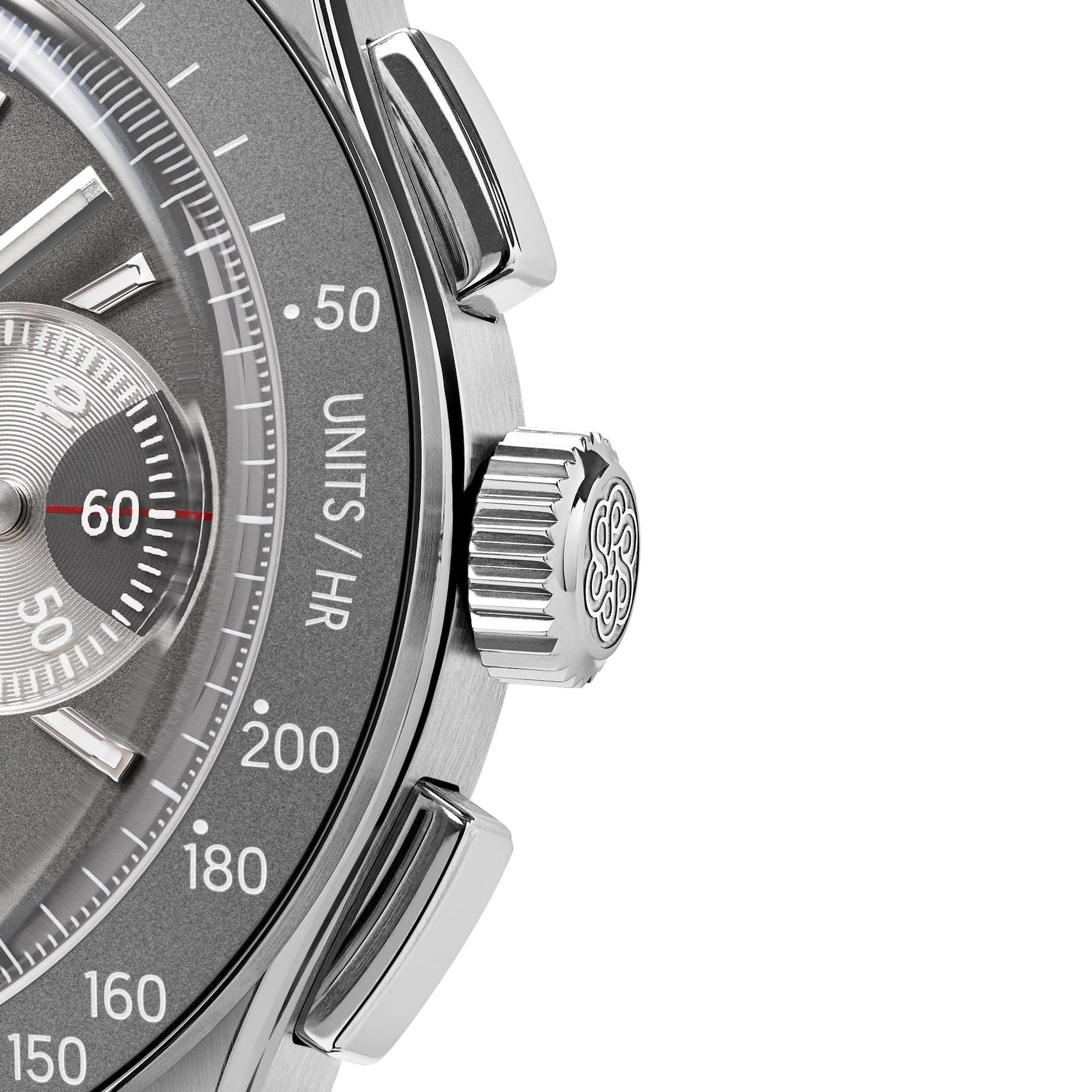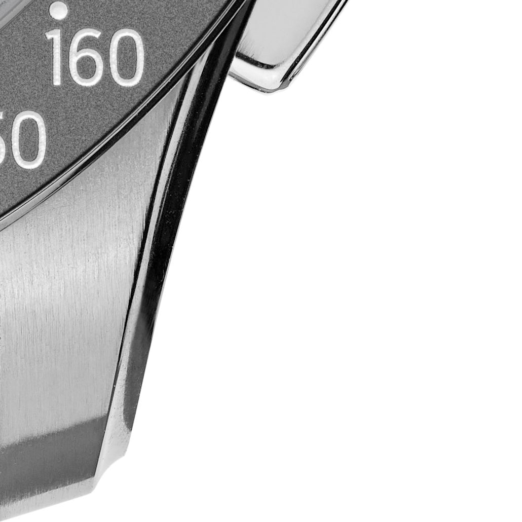 The TRASKA Chronograph Ref. 10251 offers an audacious yet respectful challenge to watchmaking convention. Two symmetrical subdials make use of transparent discs to announce elapsed minutes (left) and running seconds (right) without the need for hands. Despite the relatively thick movement within it, the case is remarkably svelte, with a sensual flourish provided by the concave cutouts on its flanks. An otherwise sporty aesthetic, emphasized by the tungsten tachymeter bezel, is offset by the bold square pushers that control the chronograph function. Protected by our signature hardening process and waterproof to 75 meters, this chronograph is designed to be used, not merely admired.