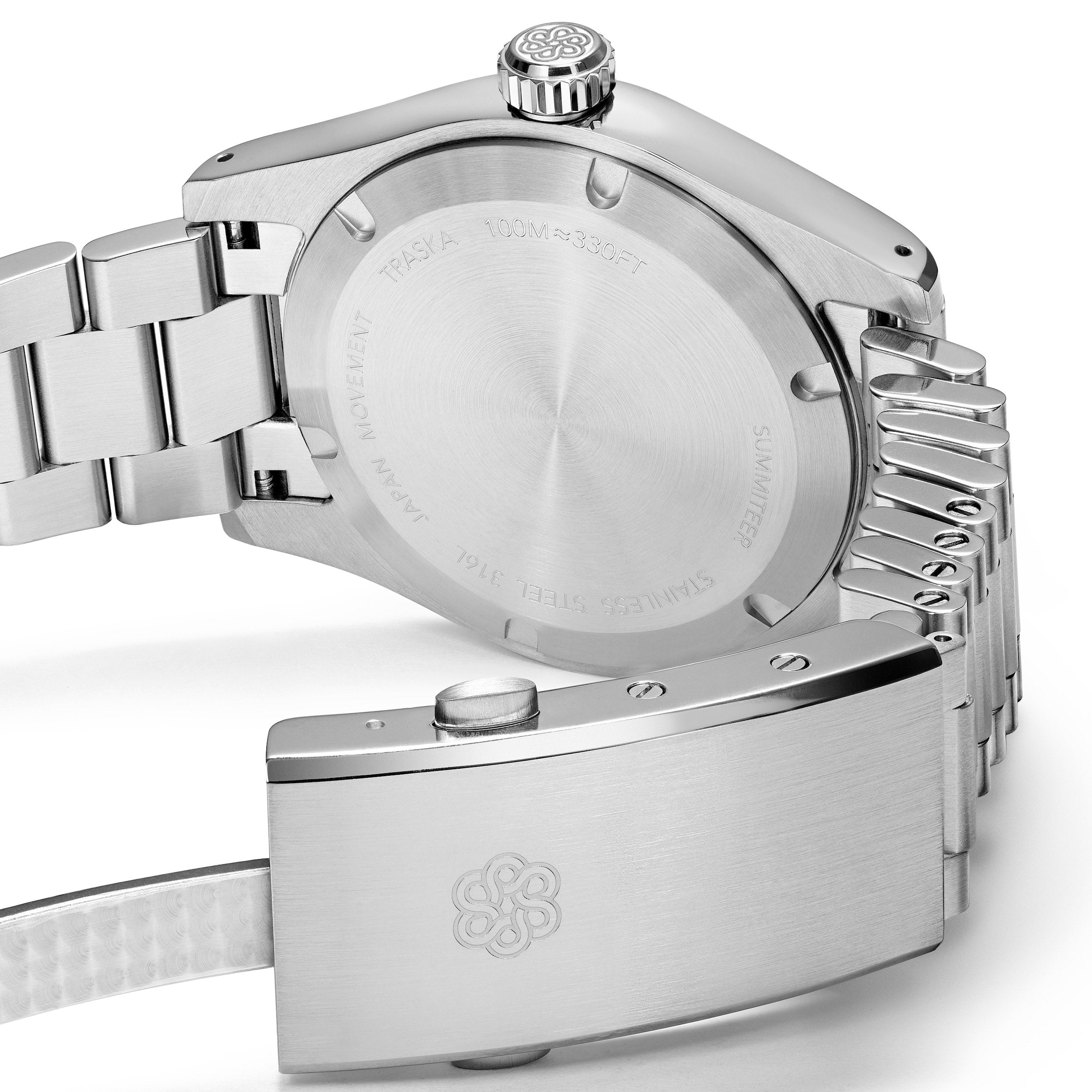 A refined blend of timeless design and modernity, the Summiteer (Ref. 2195) brings the classic field watch into the 21st century. Combining a vintage aesthetic with contemporary engineering, this formidable traveling companion is resistant to water, scratches and shocks.