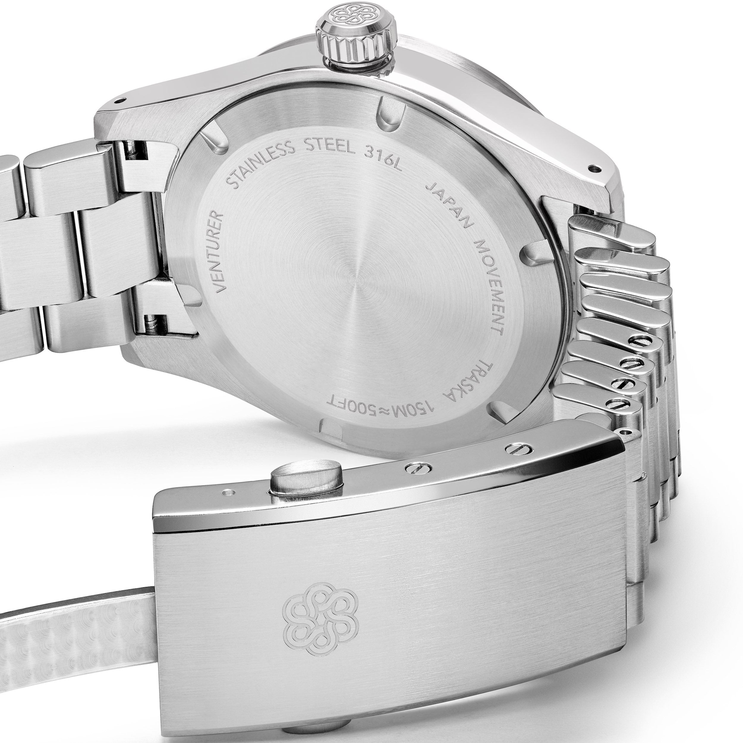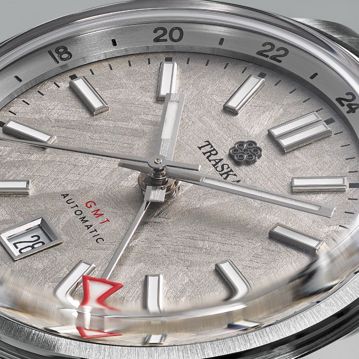 An increasingly interconnected world demands resilience, sophistication, and the ability to navigate multiple challenges at once. Thanks to an independently adjustable hour hand, you can quickly adapt to a new timezone the moment you land on the runway. And with an additional hour hand circling around the dial once every 24 hours, keeping track of the time at home has never been easier. Ruggedly endowed with 150 meters of water resistance and TRASKA’s signature scratch-resistant stainless steel and sapphire crystal, this traveler’s GMT (Ref. 4215) is unfazed by adventure and ready for the unknown.