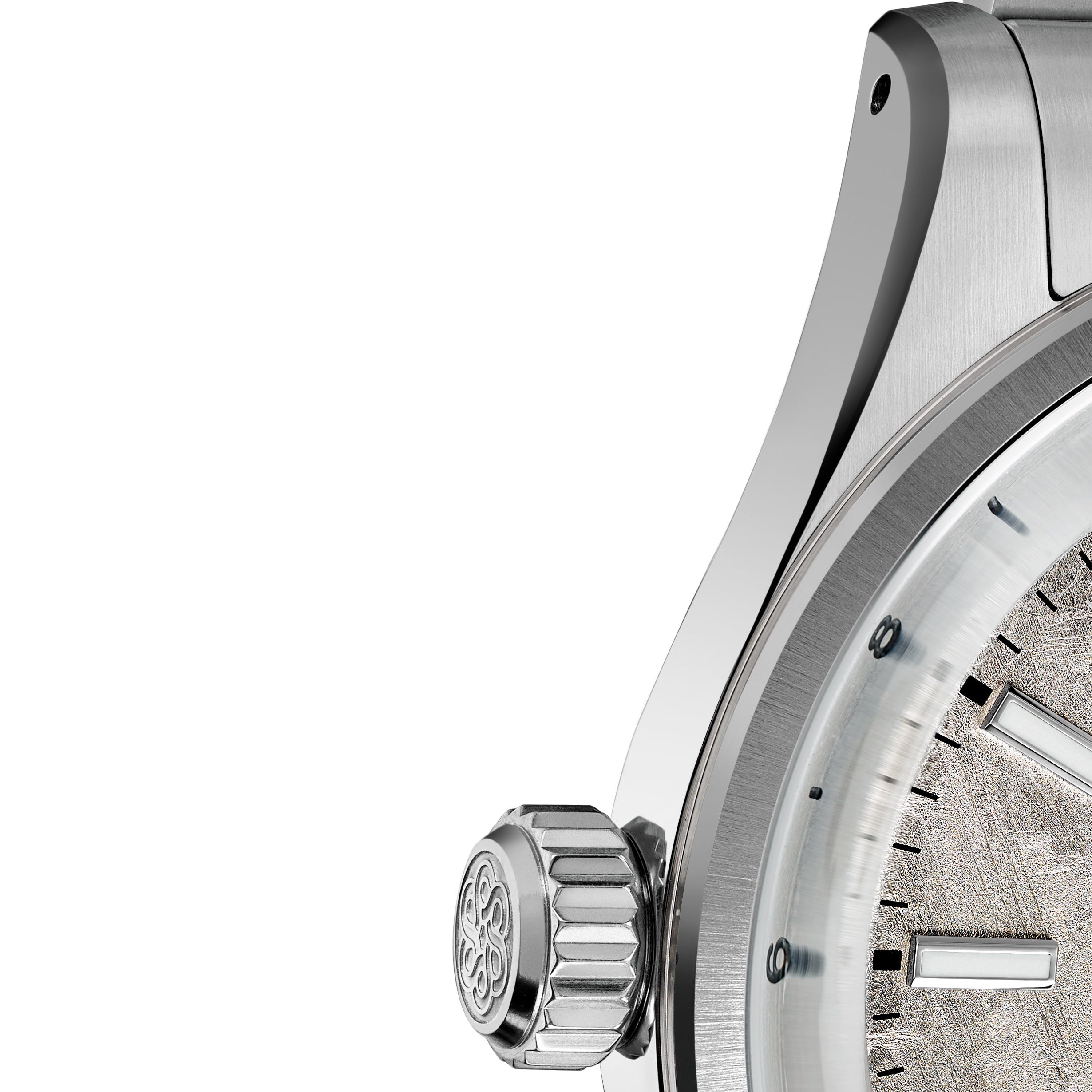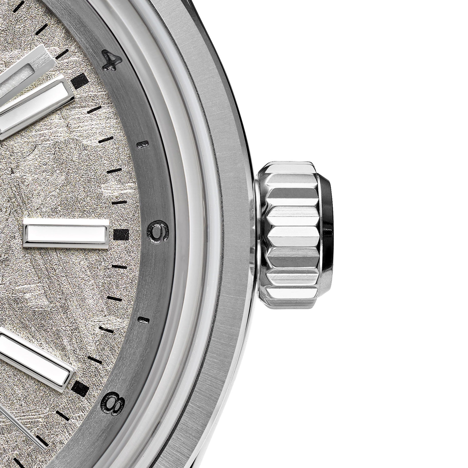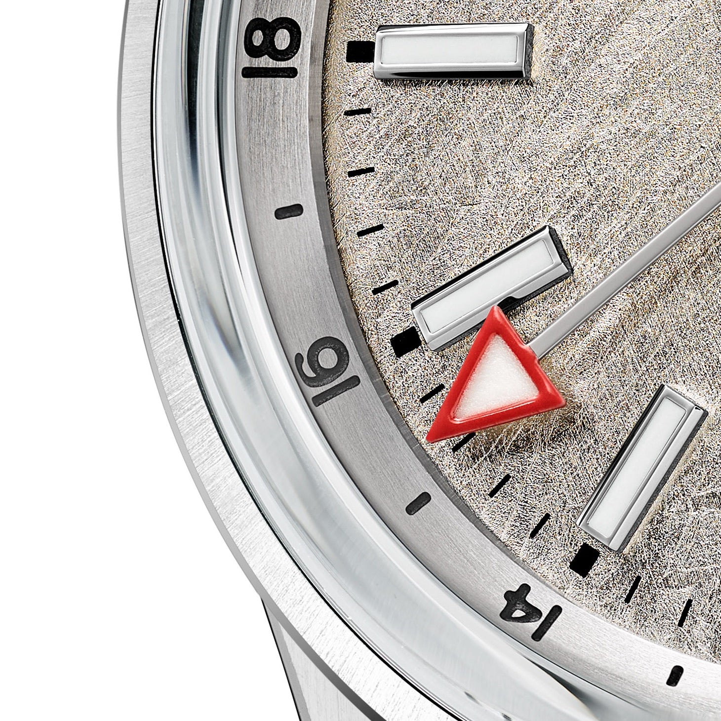 Made from a piece of the 4.5 billion-year-old Muonionalusta meteorite, every dial is unique. Before entering Earth’s atmosphere, the Muonionalusta meteorite cooled in the vacuum of space, resulting in an exquisite configuration of geometric shapes known as the Widmanstätten pattern. This pattern exists only in nature and cannot be replicated. Limited to 100 pieces.